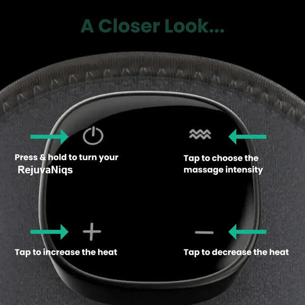 When you put RejuvaNiqs “Triple Method” Massager on, it uses soothing heat, Therapeutic Massage, and Dynamic Compression